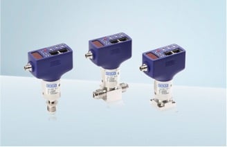 Transducteur UHP WIKA avec EtherCAT® : WUD-20-E, WUD-25-E et WUD-26-E (de gauche à droite) s’adaptent à la dimension standard du réseau de 28,5 mm pour vos mesures de pression connectées